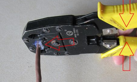 4、最后把水晶头插入8P的槽内,握紧压线钳就OK啦。