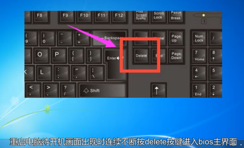 2、重启电脑待开机画面出现时连续不断按delete按键进入bios主界面。
