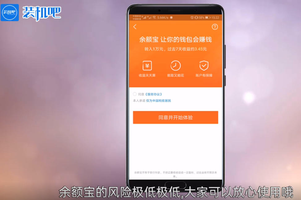 4,界面会有信息提示用户开通的协议,可以看看在确定开通,一般余额宝的风险极低大家可以放心使用哦。