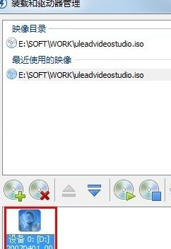 8..在主界面上右击刚才添加的光盘镜像条目,选择“装载,设备0:[D:]无媒体”如下所示。