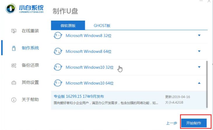 2、然后将U盘插上电脑,关闭电脑上所有的安全杀毒软件,然后打开小白系统软件,选到制作系统,点击开始制作。