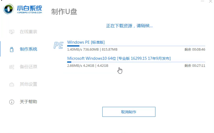 4、接下来只需要等待小白工具制作win10系统的U盘启动盘即可。