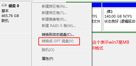 通常情况下,预装有win7系统的计算机硬盘分区表或2012年之前装有win7系统的旧计算机的硬盘分区表采用MBR格式,因为当时主板不支持UEFI,因此是Legacy模式,以Legacy模式安装的系统硬盘的分区表是MBR。