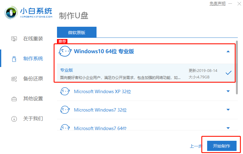 8、下载需要安装的win10系统,点击右下角的开始制作按钮。