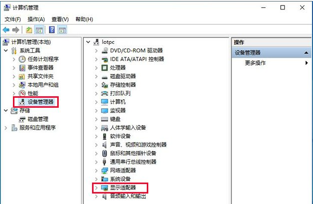 2、点击“设备管理器”,所谓的显卡适配器就是显卡,双击点击右侧栏中的“显示适配器”展开。