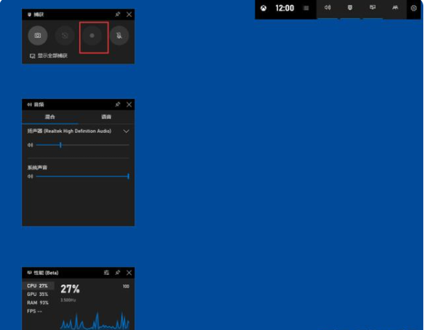 1、随着系统的不断更新,在新版的win10出现了基于‘xbox’而来的屏幕录像软件,利用所给的快捷键(默认win+G)即可打开界面。在这里发现屏幕录像软件大致分为捕获、音频、性能和菜单四大区域。