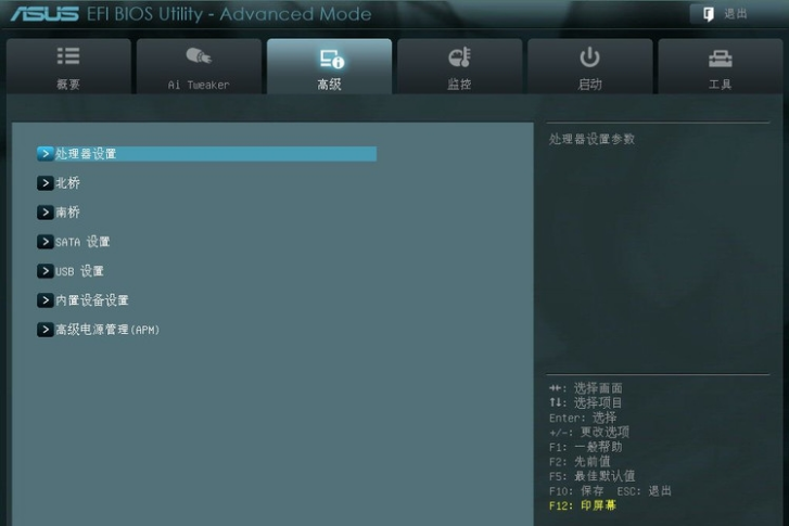 4、在高级选项中包括处理器设置、北桥和南桥、SATA设置、USB设备、高级电源管理和内置设备设置。