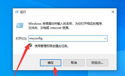 2、然后打开运行窗口,输入msconfig,点击确定按钮。