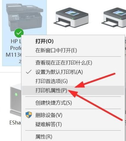 3、将电脑A的打印机共享给大家进行设置:找到本机A的打印机,右键点击---属性---共享---勾选共享本台打印机。