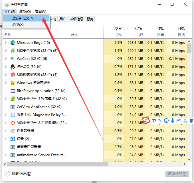 2、点击“文件”选择“新建任务(运行)”