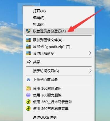 4、然后在保存的gpedit.bat上右键选择并点击[以管理员身份运行],上面在批处理代码介绍中已经说过了,dism命令需要管理员权限,所以批处理必须以管理员身份运行。