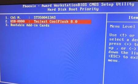 3、选择USB-HDD按加减号或F5/F6或PageUP/PageDown,移动到第一位置,按F10回车重启即可U盘启动。