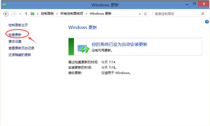 3、打开windows更新界面后,点击左侧的“检查更新”选项,如图下所示;