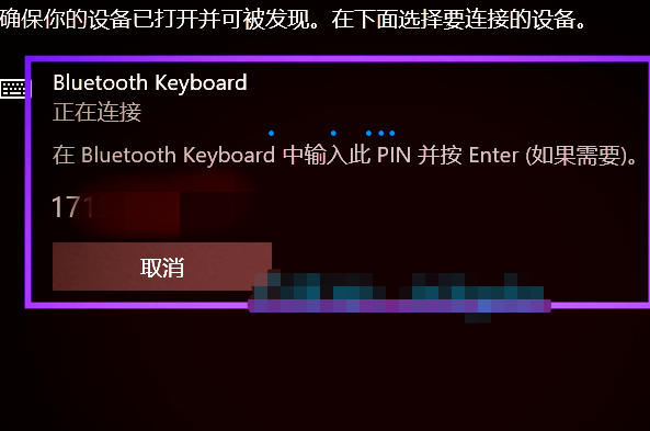 6、系统会给出一个PIN码,需要在蓝牙键盘上按PIN码输入,点击Enter。