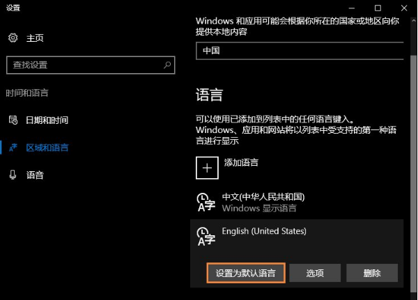 3、英文输入法设置为默认语言。