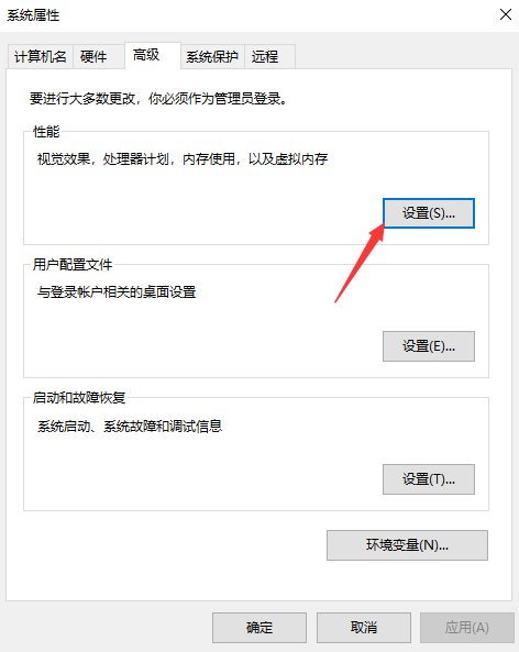 3、点击进入系统属性的高级选项卡,点击性能下方的设置。打开的窗口可以设置性能视觉效果,处理器计划,内存使用,以及虚拟内存。