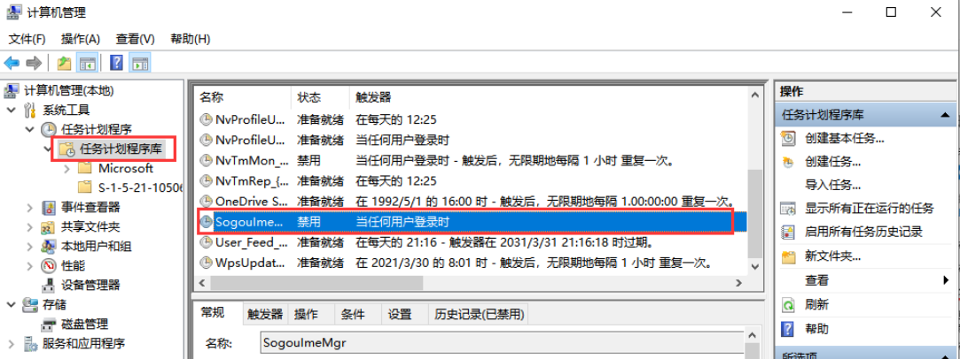 3.看到中间有一些定时启动的任务。找到广告弹窗的计划右键点击禁用即可。(我们要事先知道是否为广告弹窗)