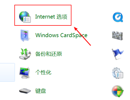 2.进入到控制面板界面,选择界面上方的Internet选项进入。