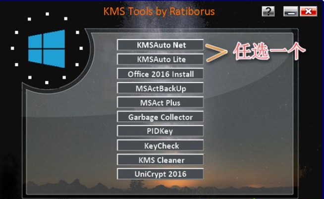 2、运行KMSTools.exe,在KMSAuto Net 和 KMSAuto LIte 中任意选择一个运行。