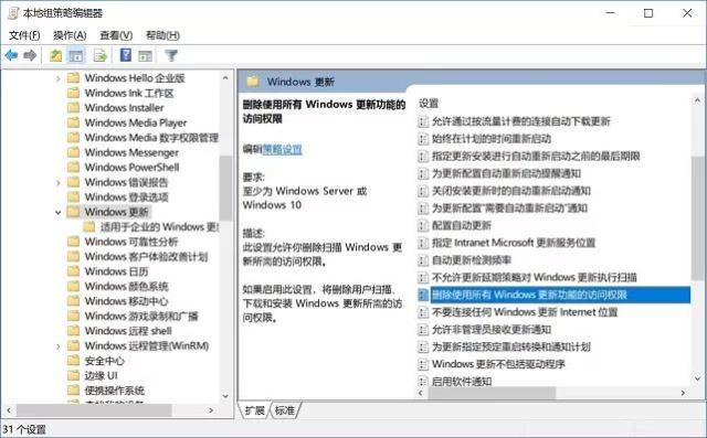 12、之后还需要再找到“删除使用所有Windows更新功能的访问权限”,选择已启用,完成设置后,点击“确定”保存,如图所示。