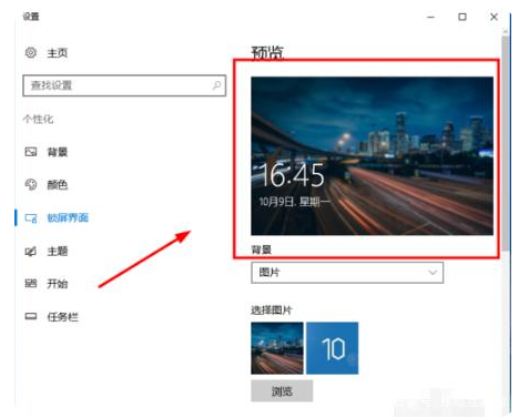 2、在设置页面的左侧点击“锁屏界面”,继续下一步。