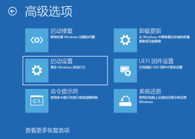 4.高级选项,点击启动设置(改变Windows启动行为);