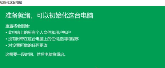 9.我们在弹出的页面中选择重置,那么电脑就会开始进入到初始化的页面。