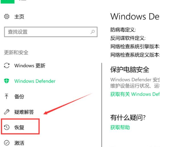 3.在进入的页面中左侧的栏目里找到恢复功能。