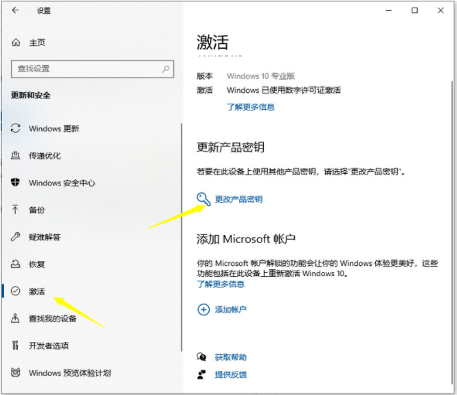 依次点击win10专业版系统的开始菜单—设置—更新和安全—激活—更改产品密钥,输入win10专业版激活密钥,点击下一步激活系统即可。