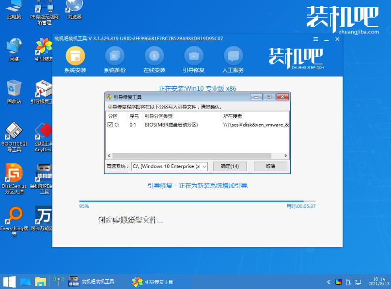 5、在pe系统内,装机吧装机工具开始自动安装win10系统。