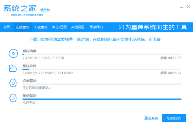 5.进入pe系统后,系统之家装机工具会自动开始安装win10系统。