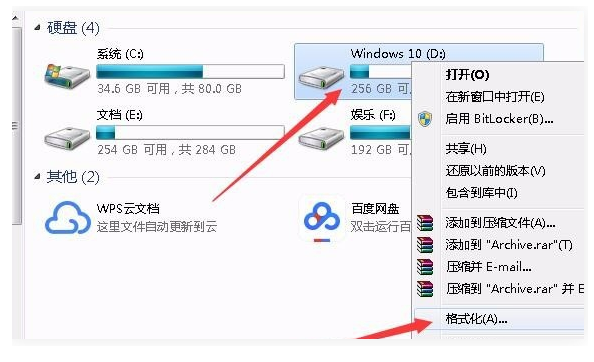 3、完成以上步骤后,回到win10系统桌面双击打开“此电脑”,然后找到刚才删除的系统所在的磁盘分区,鼠标右键点击“格式化”。