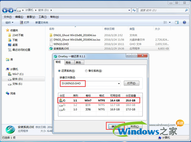 4、双击安装系统,然后选择系统文件,也就是win10.gho,选择C盘为系统安装盘