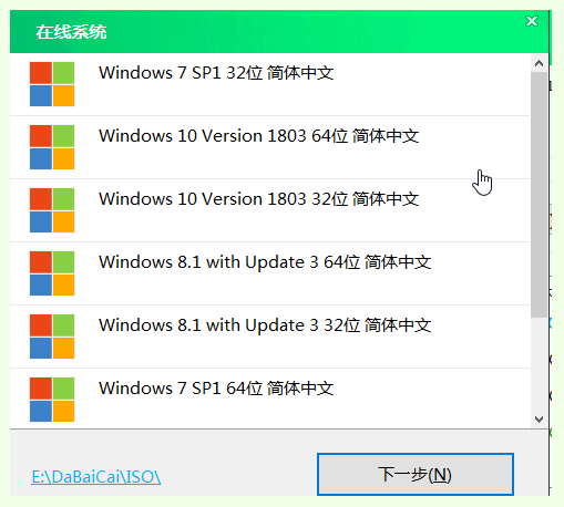 1、打开大白菜装机软件,插入u盘点击开始制作u盘启动盘,然后点击“系统下载”。