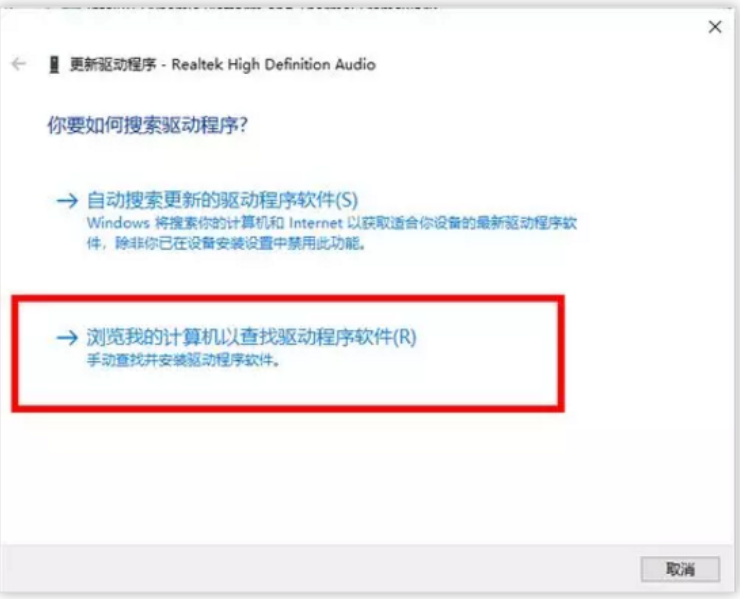 3、选择【浏览计算机以查找驱动程序软件(R)。