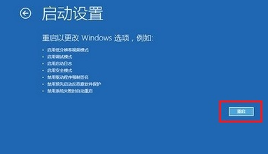 4、之后我们在新进入的页面里点击“启动设置”,并点击右侧的“重启”按钮。