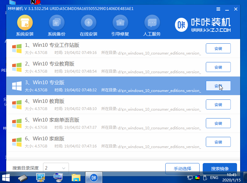 进入pe系统后打开咔咔装机工具安装win10系统;