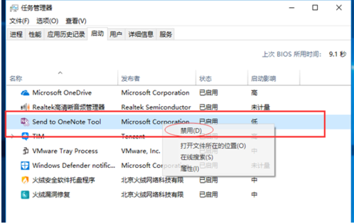 9、在“任务管理器”中可以看到所有开机自启项,右击需要关闭的启动项上,选择“禁用”。单击确定保存后,重新启动系统。