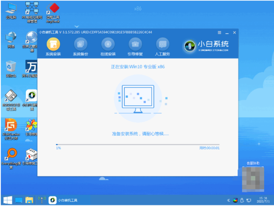 6、然后我们就进入到PE系统中,等待小白装机工具安装win10系统。