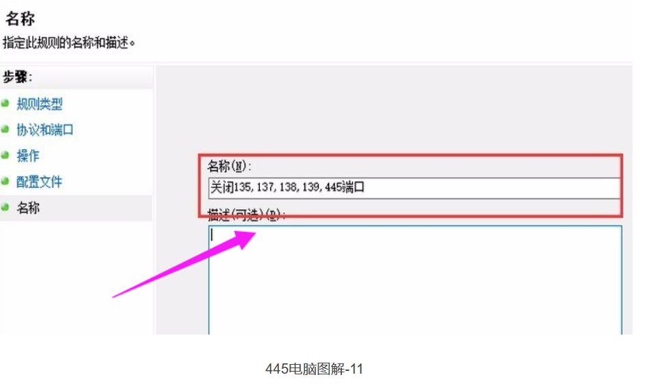 选择“特定本地端口”,输入135,137,138,139,445,中间用逗号隔开, 特别注意这里的 逗号 一定是英文的逗号