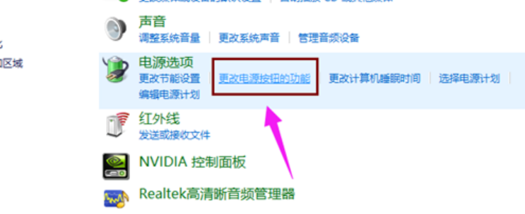 3、在“电源选项”下,点击“更改电源按钮的功能”;