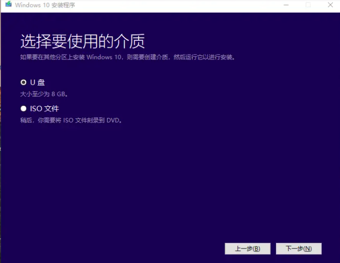 5、选择安装的介质为U盘,点击下一步。