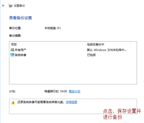 确认一下所设备的备份选项,正确无误后点击“保存设置并进行备份”按钮