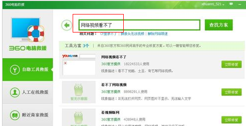 在搜索出输入“网络视频看不了”,点击“查找方案”