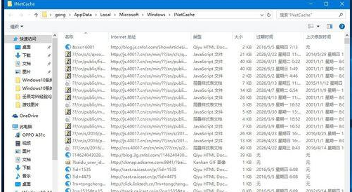 回到资源管理器窗口,依次展开C:\Users\gong\AppData\Local\Microsoft\Windows\INetCache,