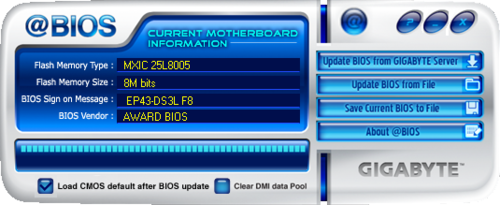这个就是 @BIOS 主界面了。点击右侧“Update BIOS from file”,然后找到刚才下载的“F8”固件,选择扩展名为“f8”的文件,确定。