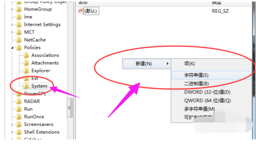右键点击Policies项,选择【新建】,【项】将其命名为 System