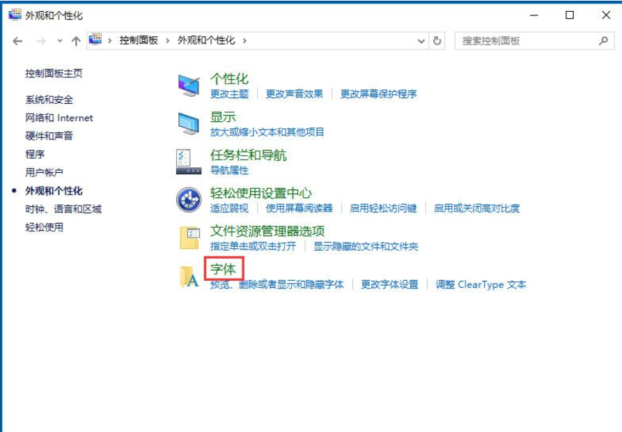 5、在打开的字体窗口中,点击左侧的“调整Cleartype文本”快捷链接,然后在弹出窗口中根据提示操作就可以了哦。
