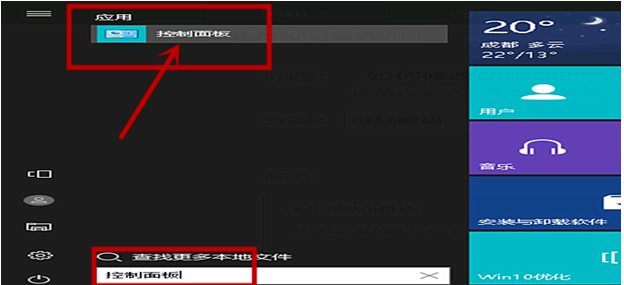 1,首先,在开始选项的搜索栏中搜索“控制面板”,如图所示。