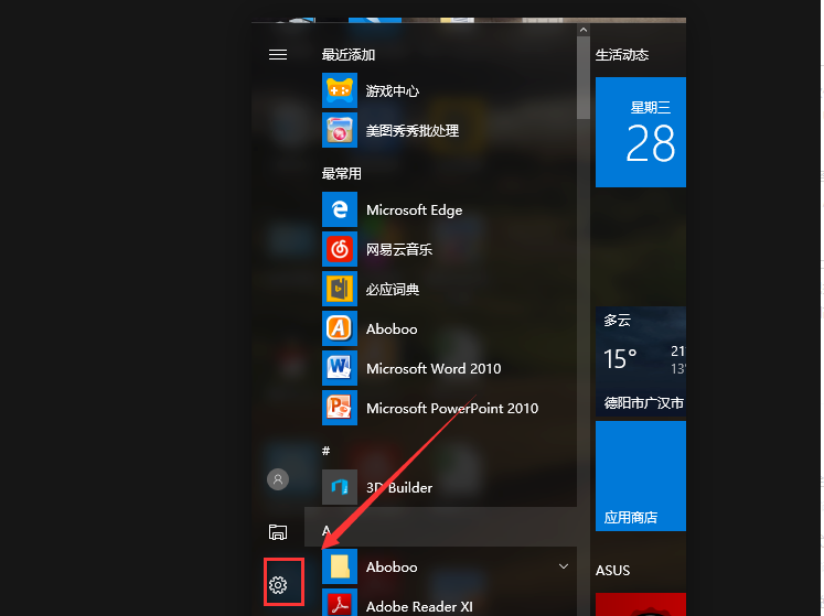 1、以Win10系统为例,打开桌面左下角的“windows图标”,找到“设置”选项,